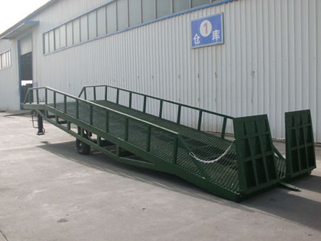移動式登車橋是與叉車配合使用的貨物裝卸專用輔助設(shè)備,有了它叉車能直接從地面駛?cè)肫囓噹麅?nèi)部進(jìn)行批量裝卸作業(yè)。產(chǎn)品采用人工液壓動力,不需接動力電源。只需單人操作,即可實現(xiàn)貨物的安全快速裝卸。它可使企業(yè)減少大量勞動力,成倍提高裝卸作業(yè)效率,加快貨物流通速度,獲取更大經(jīng)濟(jì)效益。